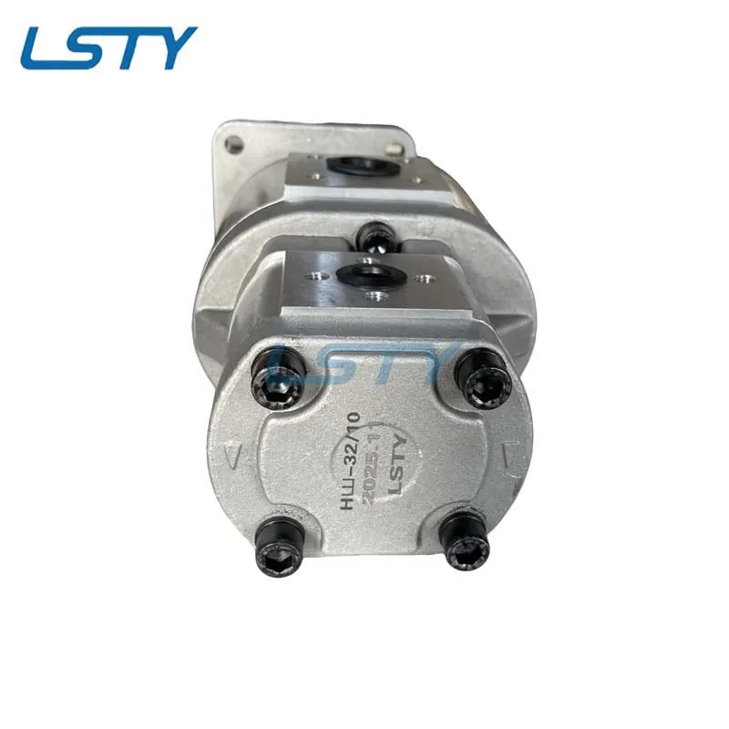The NSH32-10-3 pump is a twin-gear pump for hydraulic systems of various special equipment, agricultural machines, industrial tractors, cranes, pipe layers, and bulldozers. The NSH32-10-3 pump has two sections and combines two single pumps, which significantly increases its performance and saves space for installing the NSH pump. The tandem unit uses a single drive shaft to rotate the two leading gears. The torque of the drive shaft is equal to the sum of the torques for all sections of the gear pump. Gear pumps serve one purpose: to supply (pump) working fluid to the hydraulic system of special equipment.